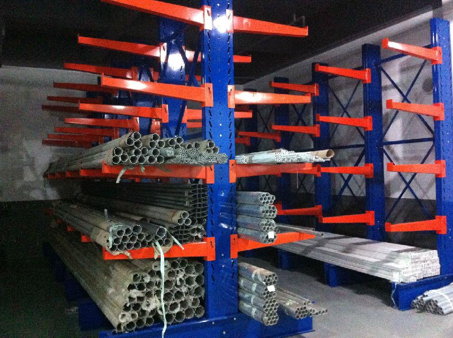懸臂式貨架一般用于存放長材料、環(huán)狀材料、板材、管道和不規(guī)則貨物。懸臂可以是單面或雙面,懸臂架具有結(jié)構(gòu)穩(wěn)定、承載能力好、空間利用率高等。懸臂架柱多為H型鋼或冷軋鋼,懸臂采用方形管材,冷軋鋼或H型鋼,懸臂與立柱之間采用插電式或螺栓式,基材和立柱采用螺栓固定式,底座使用冷軋鋼或H型鋼。貨物使用由叉車、車輛或手動進(jìn)行。